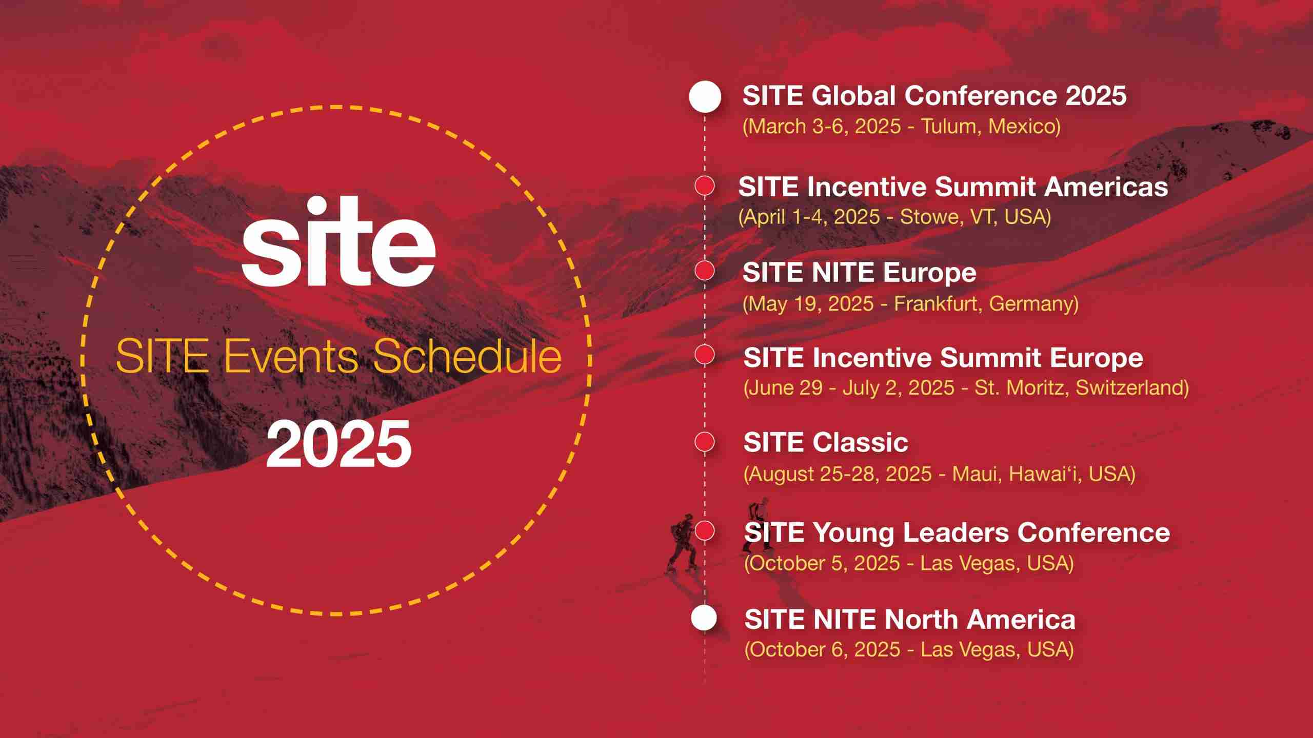 Our 2026 sponsorship prospectus is now finalized. If you’re looking to align your brand with incentive travel professionals, reach out to Samantha Nicastro at snicastro@siteglobal.com for more information on our live and virtual events, as well as digital opportunities.